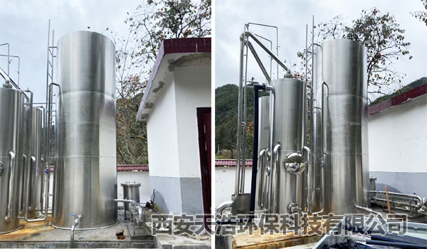 陜西商洛農(nóng)村水質(zhì)提升項(xiàng)目日供水量200~240噸,水源為山泉水,采用混凝、沉淀、過(guò)濾、消毒的處理工藝流程,安裝一臺(tái)10噸/小時(shí)304不銹鋼TH-YYA一體化凈水設(shè)備,配粗濾器、四管式管道混合器、絮凝劑加藥裝置、消毒劑投加裝置。